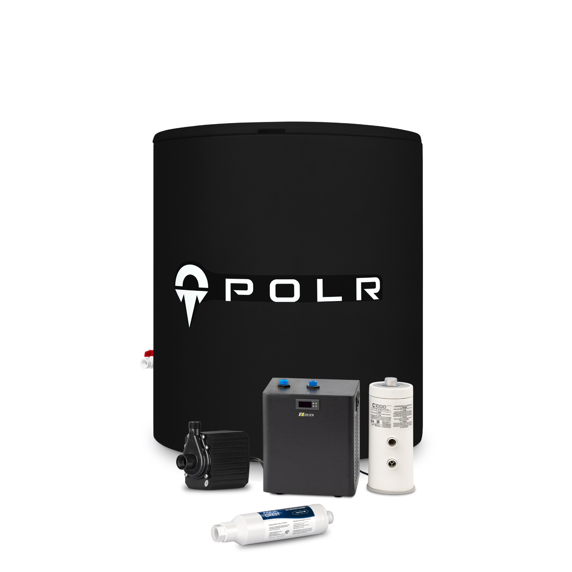 The perfect setup for your garage or covered area. Includes chiller, Danner 1800 pump, C-1000 filter, hose filter, all hoses and fittings for setup, and 1-year support and warranty on accessories and plunge. Includes 5 year warranty on Polr plunge. Cools water to 35 degrees even in the hottest temperatures.